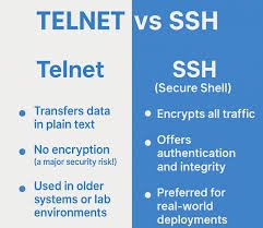 The primary difference between SSH and Telnet is that SSH encrypts all communication, providing a secure connection, while Telnet sends all data in plain text, making it highly vulnerable to interception and security attacks. SSH is the modern, recommended standard for remote access, whereas Telnet is largely obsolete due to its security flaws. Comparison of SSH and Telnet Feature SSH (Secure…